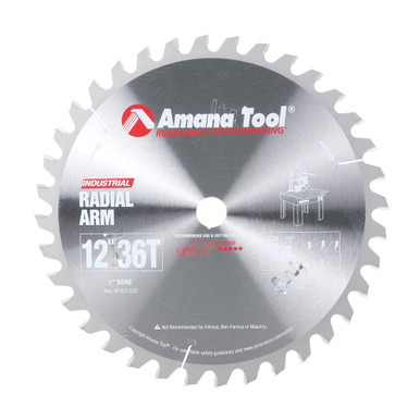 Amana Tool RA1236 Carbide Tipped Radial Arm 12 Inch D x 36T ATB, 0 Deg, 1 Inch Bore Circular Saw Blade